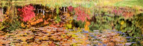When I took the top photo I thought it was a nice Autumn scene in Michigan. But after looking at it more critically, I realized the bottom half of the photo was a more interesting Impressionistic style photo of greater beauty. Here you get the reflections of the colorful trees and scrubs, and you are more aware of the Lilly pads in the lower part of the photo. God can create beauty that surpasses that of a great artist’s brush. I have an acrylic print of the lower photo hanging in our living room when I change out the summer photos for Autumn themed ones.